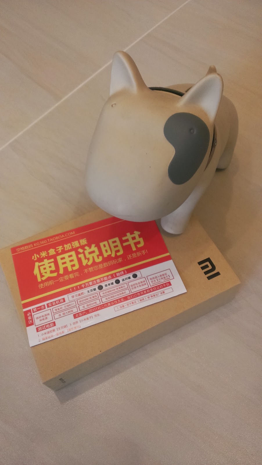 包裝還蠻仔細的, 除了快遞郵包外, 裡面又一個紙箱包住原先的包裝, 存心讓人多拍一張開箱照的(誤), 裡面多了一張使用說明說, 這是店家附的, 並不是小米盒子原本的說明書, 由於我買的是所謂的強化版, 是店家改過的, 所以多了這一張, 還算貼心